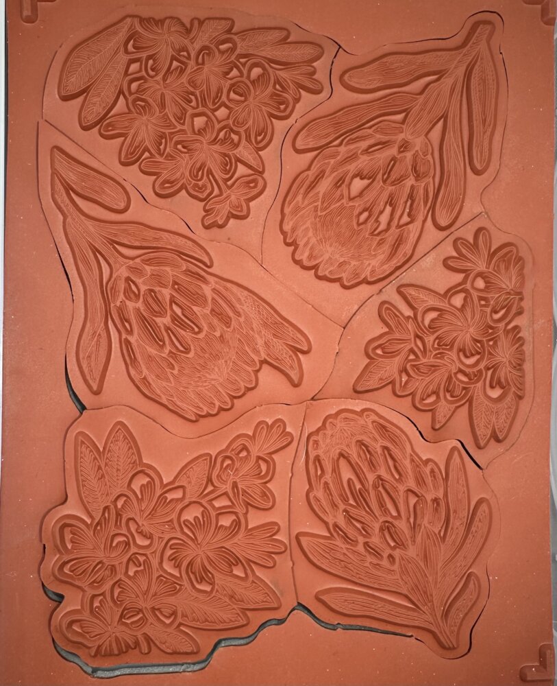 For this card I used the Petal Arrangements stamp set as an all-in-one stamp. You can see the difference in how the red rubber is cut…instead of being trimmed close to the image, it’s cut so that the pieces butt up against each other easily.