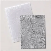 Embossing folders, label die-cut, embellishments, and placement of floral die-cut.